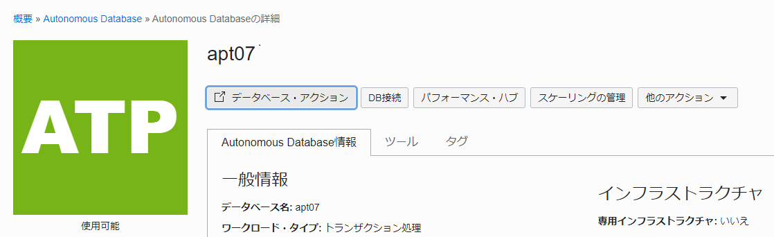 - ADBインスタンスが構成済みであること
