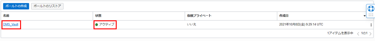 作成したボールトの状態が アクティブ になるまで待ちます。(5分ほどかかります。)
