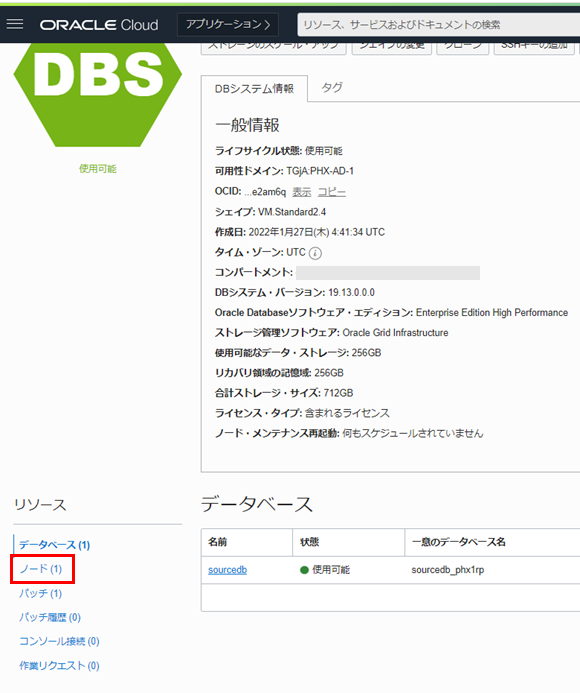- 接続文字列 - 2-1.ソース・データベースのCDBとPDBの接続情報の確認の5.でメモ帳にコピーした接続文字列のホスト名部分をデータベース・ノードのプライベートIPアドレスと入れ替えて入力します。例:10.0.0.28:1521/sourcedb_phx1rp.sub01270428300.vcndms.oraclevcn.com