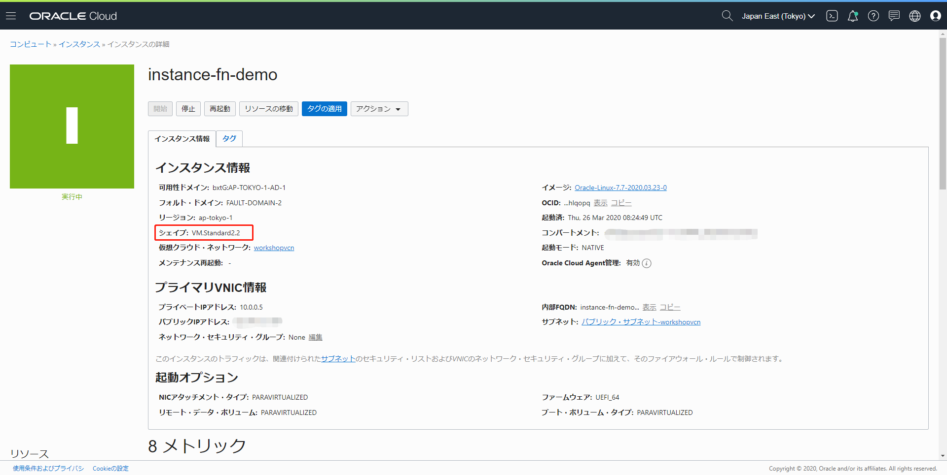 このステップでは、Fn Projectハンズオンで作成したコンピュートインスタンスを利用して動作確認を行います。
