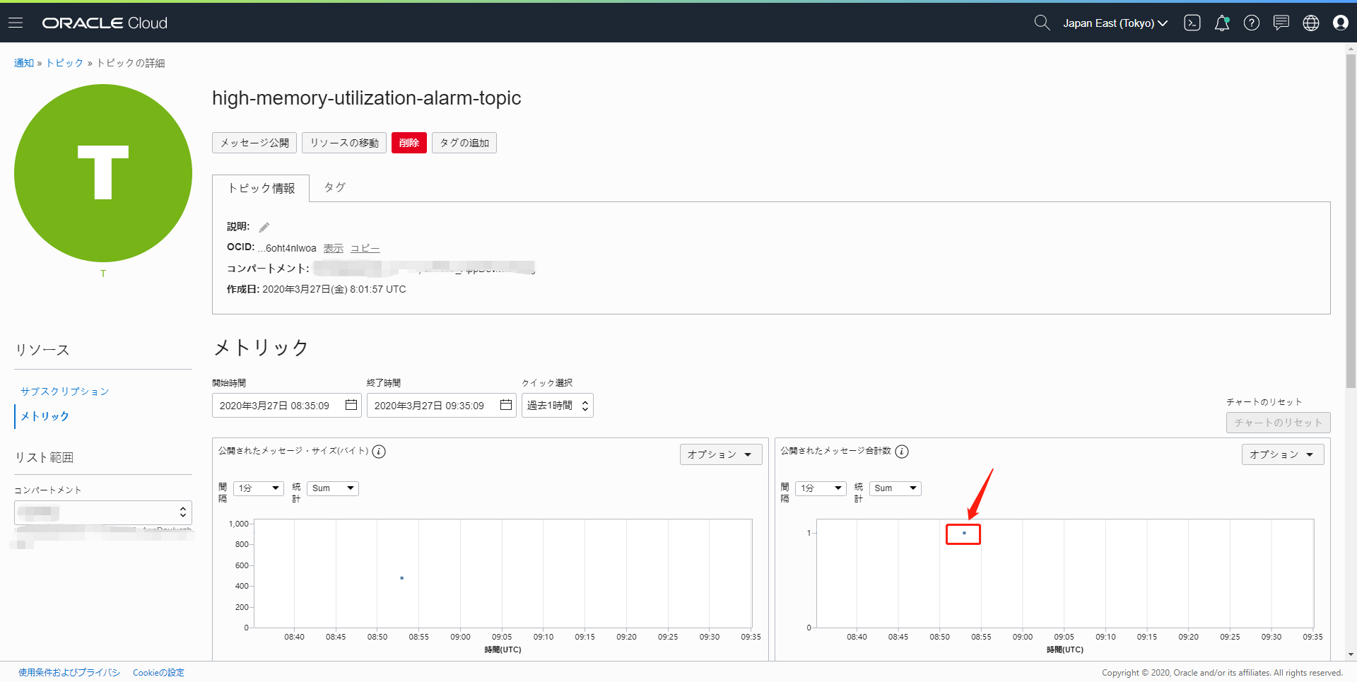 このステップでは、OCIコンソールを使用してアラームを作成していきます。