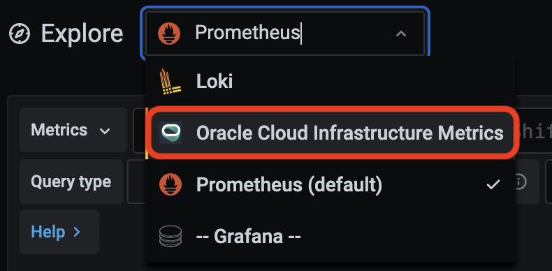 をクリックし、最下部にある「Oracle Cloud Infrastructure Metrics」を選択し、