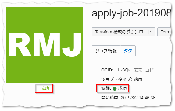 これで、クライアント環境の構成とOKEクラスターの作成に必要なジョブが開始されます。