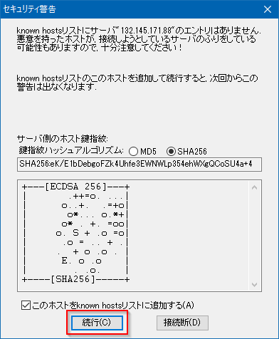 「SSH認証」というダイアログが表示されたら、以下のように値を設定してOKをクリックします。