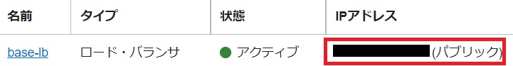 「base-lb」のIPアドレスを確認します。