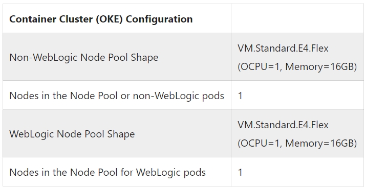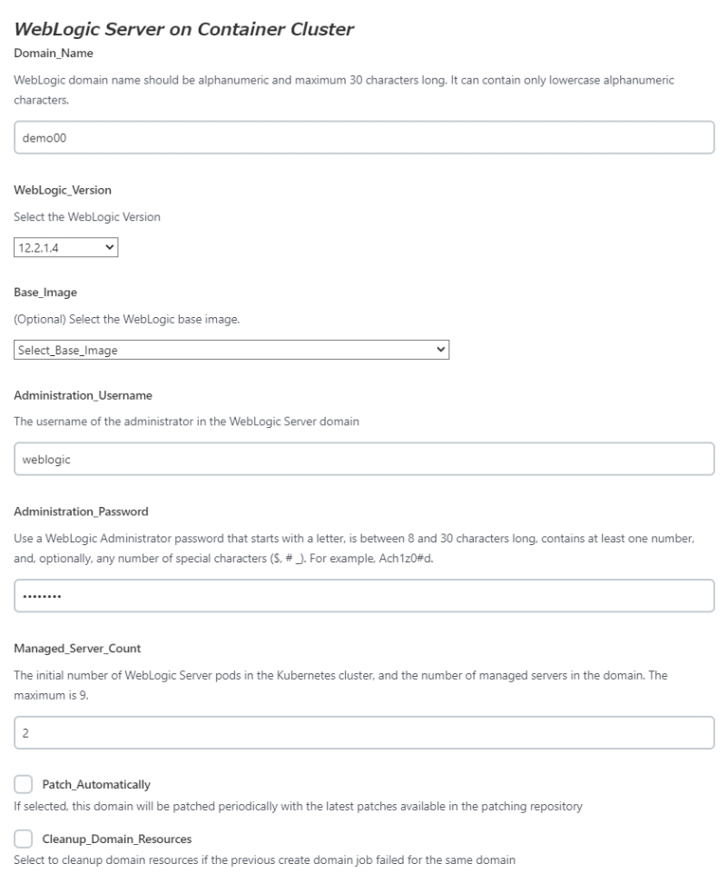 | Existing_Node_Pool | 利用するWebLogic Node Poolを選択。 ここでは wls4oke-wls-np (プロビジョニング時に作成されたもの) |