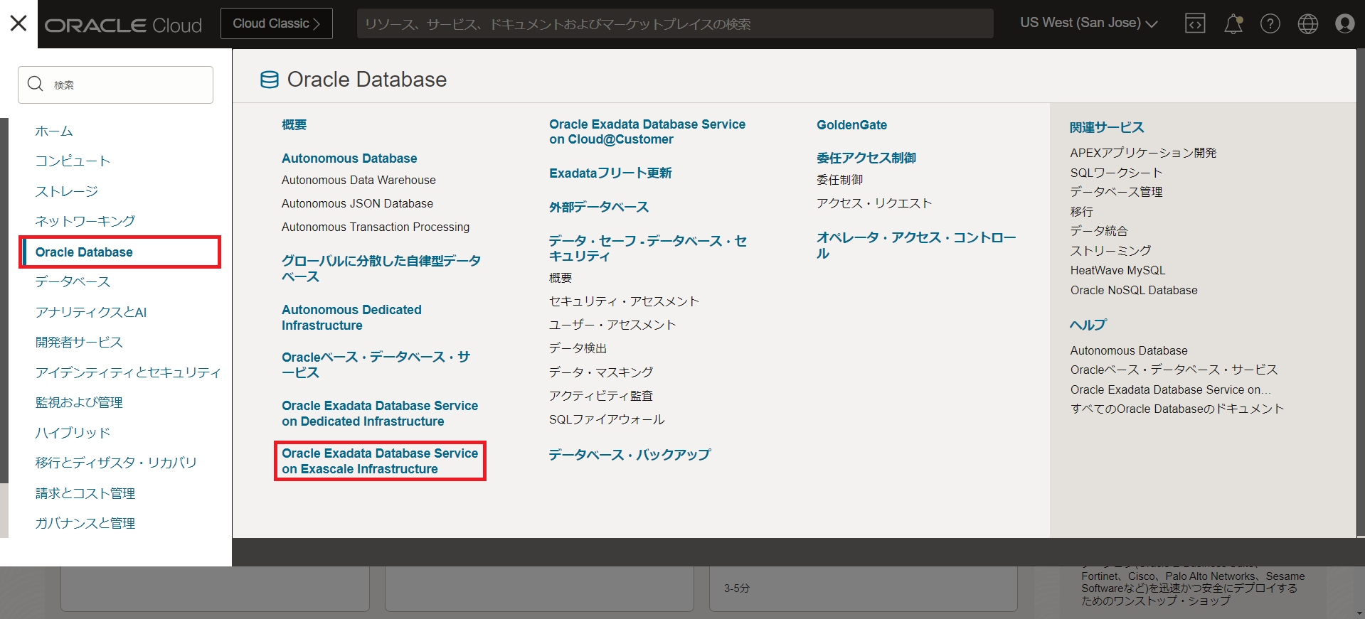 1. OCIコンソール・メニューから Oracle DatabaseOracle Exadata Database Service on Exascale Infrastructure に移動します。