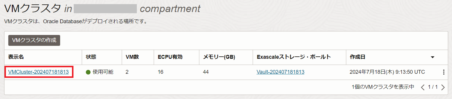 2. 1. VMクラスタおよびデータベースの作成で作成したVMクラスタの表示名をクリックします。