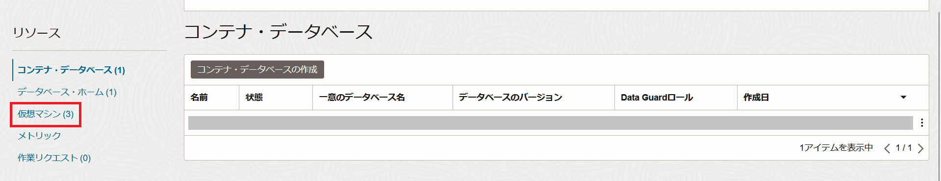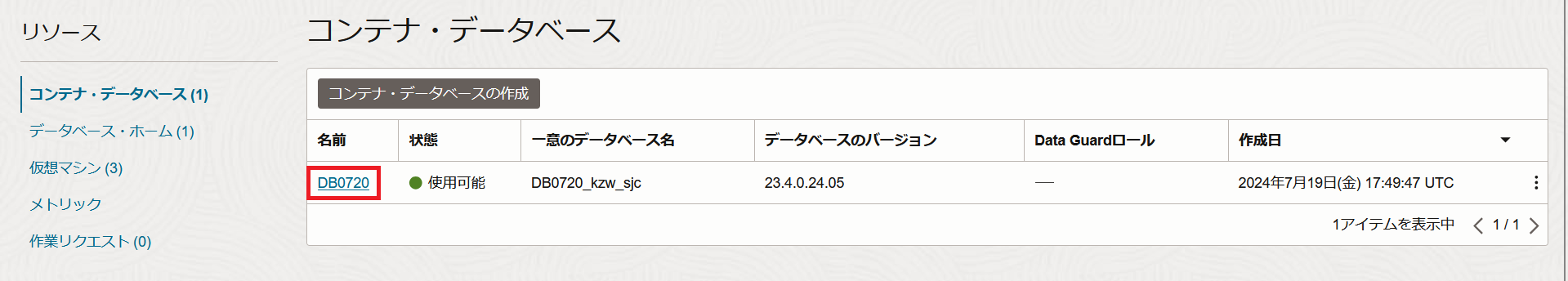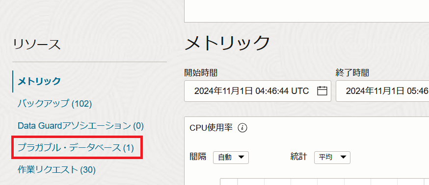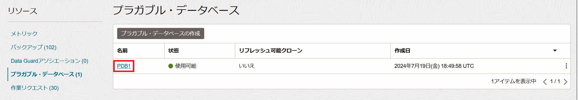 4. リソースの一覧からプラガブル・データベースをクリックします。