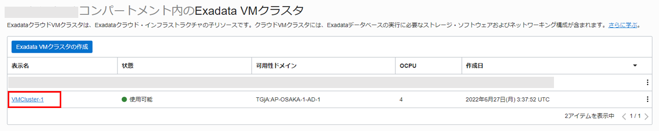 リストアしたいExadata VMクラスタの表示名をクリックします。