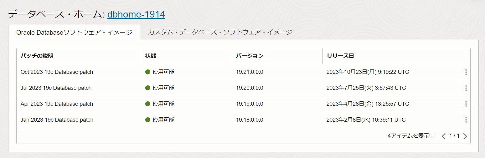 適用可能なパッチの一覧が表示されます。(例では、19.21.0.0.0が適用可能)