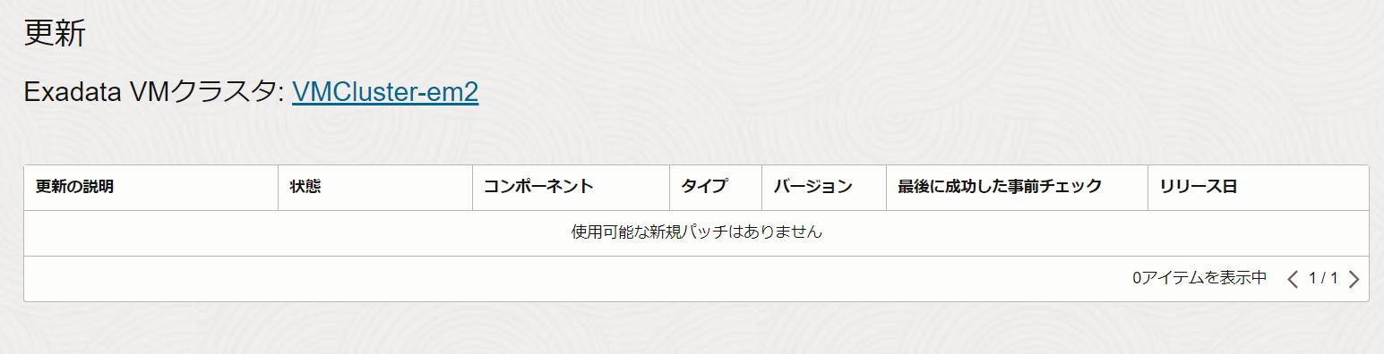 VMクラスタの状態が使用可能に切り替わり、パッチが成功すると、パッチの一覧から適用したパッチが消えます。適用したパッチはdbaascliを使用してロールバックできます。