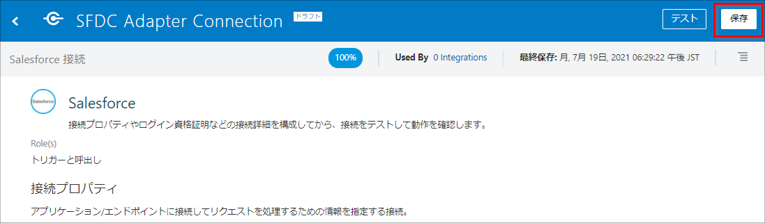 OICに事前定義されたSFDCアダプタを利用して、SFDC接続を作成します。