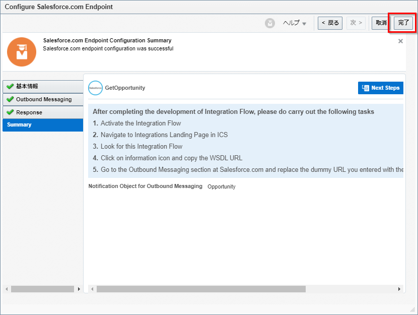 このチュートリアルは、Salesforce(SFDC)側で新規商談(Opportunity)が登録されたら、SFDCのアウトバウンドメッセージが送信され、OIC の統合が起動される一連の動作を確認します。