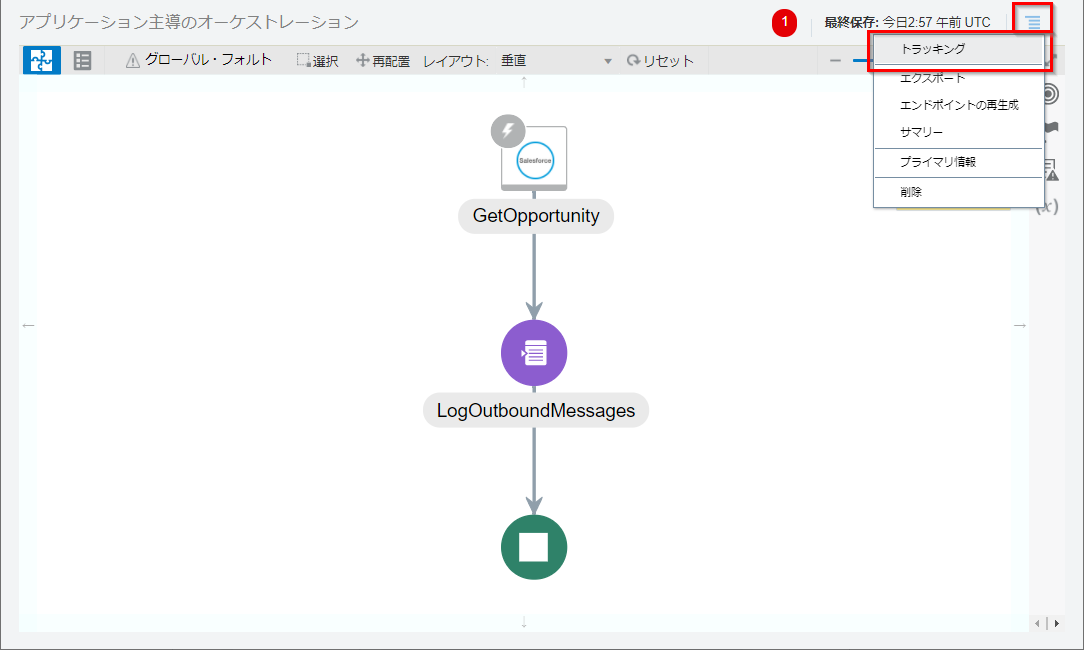 ロガーアクションの設定、concat 関数の利用方法は、下記マニュアルをご参照ください。 Log Messages with a Logger Action https://docs.oracle.com/en/cloud/paas/integration-cloud/integrations-user/create-orchestrated-integrations.html#GUID-5E9AED28-B0C3-4A0B-9154-6D795BAB90B4 {: .notice–info}