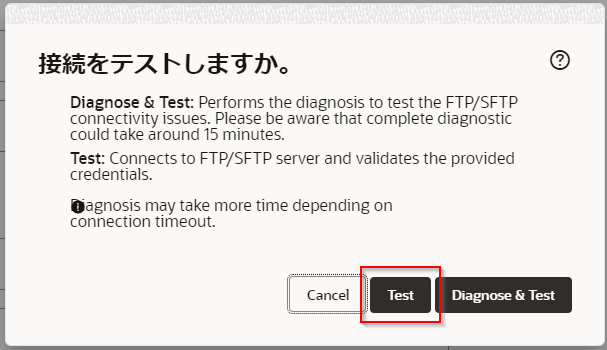 「接続をテストしますか。」 というボックスが表示されたら、 「テスト」 ボタンをクリックします。