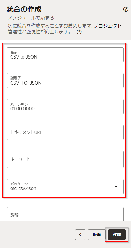 「この統合はどのパッケージに属しますか。」 oic-csv2json