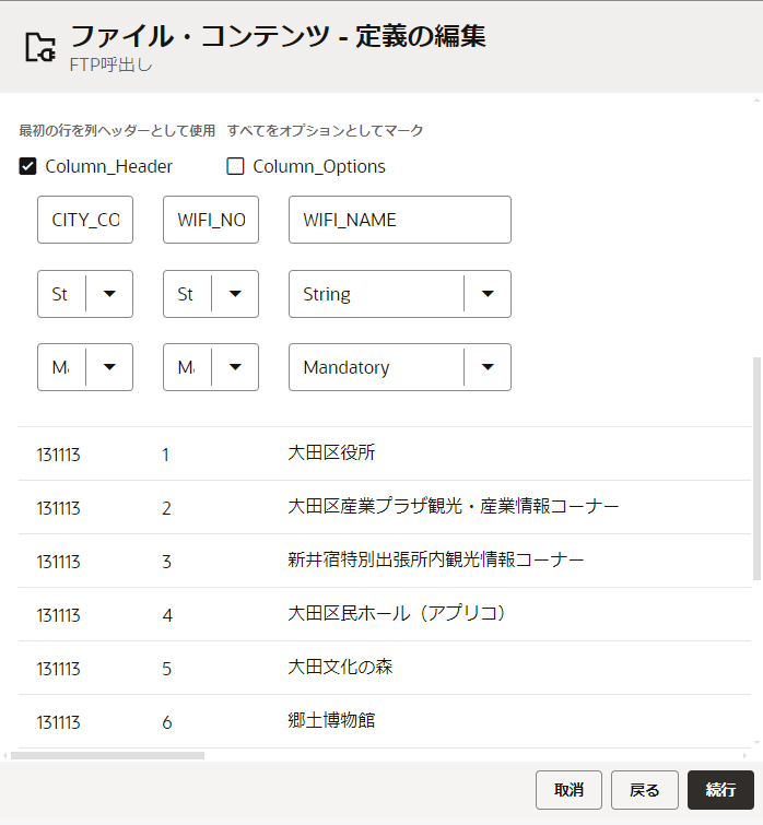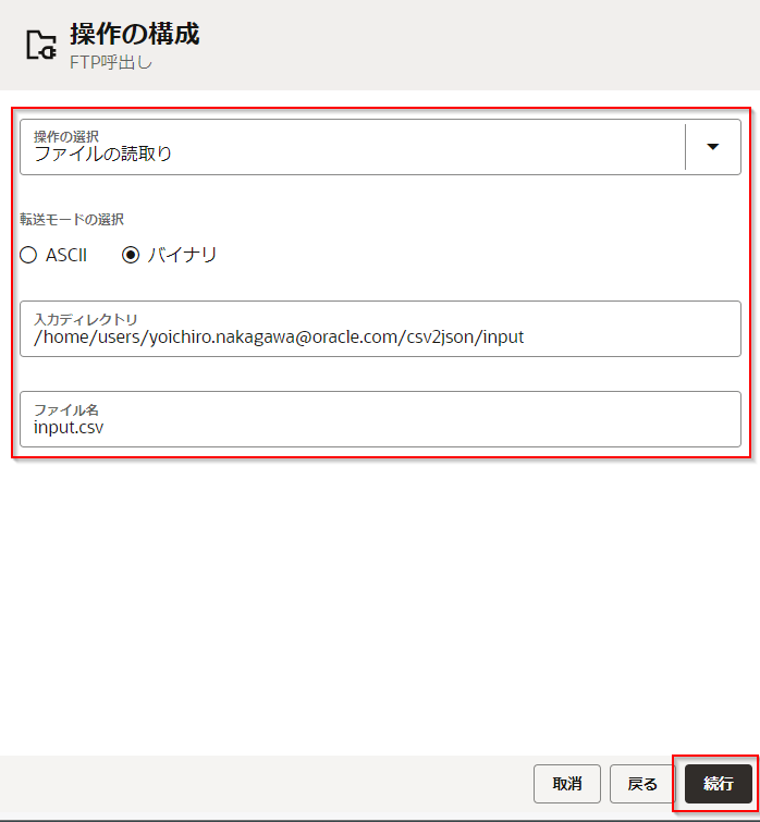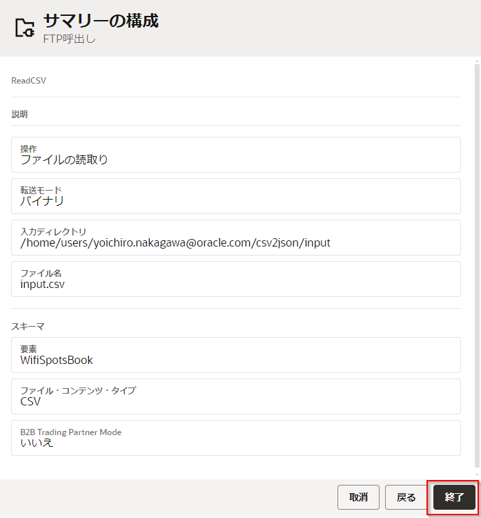 1. Oracle Integration Cloud のファイル・サーバーから CSV ファイルを取得し読み取る