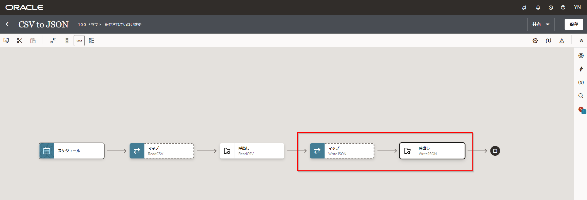 キャンバス・ビューに 「マップ先 WriteJSON」 と 「WriteJSON」 の2つが追加されています。
