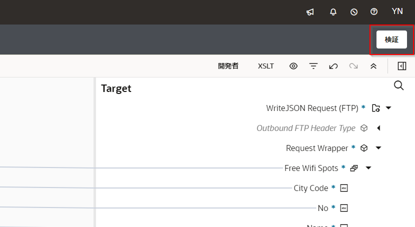 「マップ先 WriteJSONは正常に検証されました。」 というメッセージが表示されたら、 「<」 ボタンをクリックしてへ戻ります。