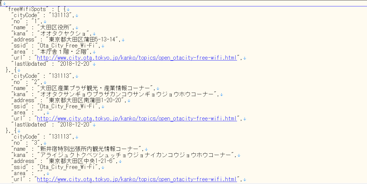 最後にSFTP サーバーにログインして、/home/users/<ユーザー名>/csv2json/output/output-1.json をダウンロードして、生成されたファイルを確認します。