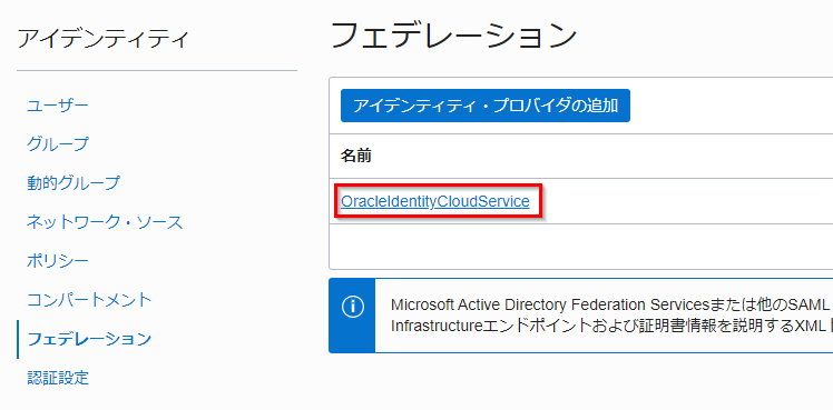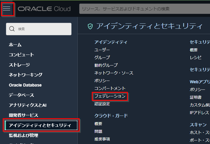IDCS の管理コンソールを開きます。今回は、OCI の管理コンソールからアクセスします。