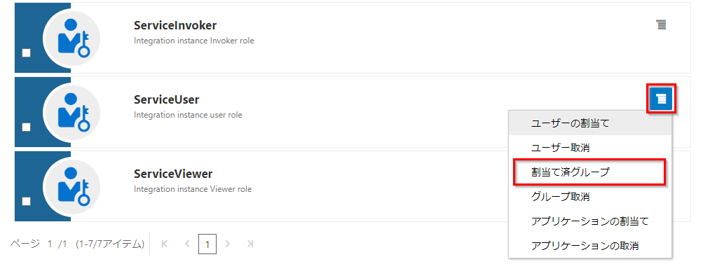 ServiceUser のメニューをクリックし、割り当て済グループをクリックします
